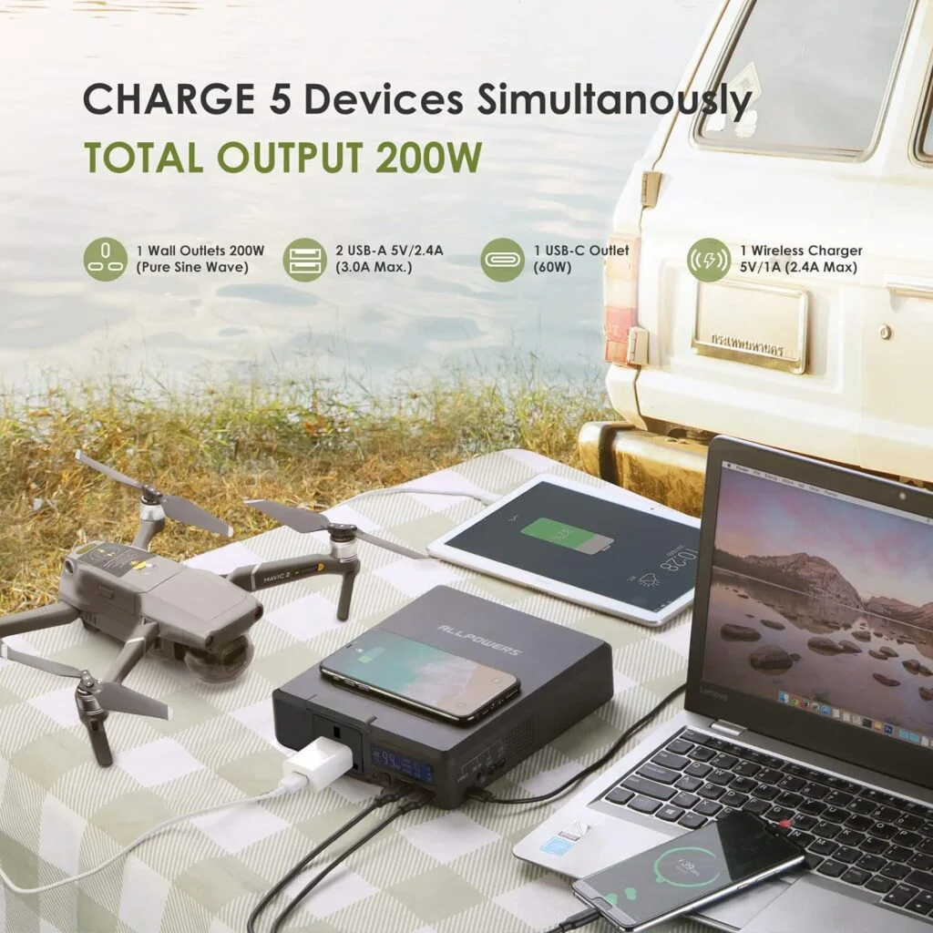 The ALLPOWERS S200 emerges as the ultimate power solution for diverse scenarios. Boasting a formidable 154Wh battery pack, it proves adept at charging a wide array of devices, including laptops, phones, cameras, drones, holiday lights, and beyond. This portable power bank becomes an indispensable companion, catering to your energy needs whether you find yourself working outdoors, engrossed in study sessions, encountering unexpected emergencies, or embarking on journeys.
