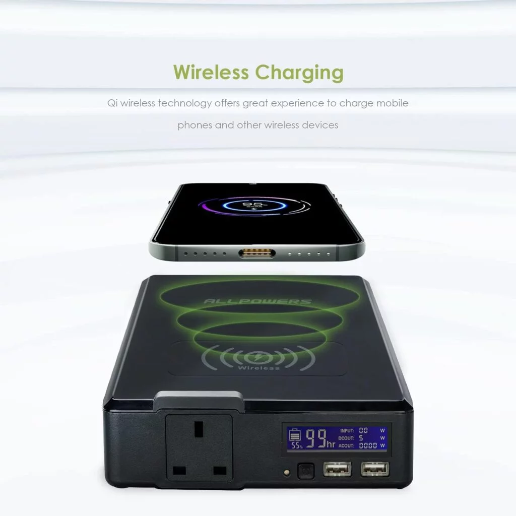 Cut the cords and experience the convenience of wireless charging. The ALLPOWERS S200 features a wireless charger, providing a tangle-free solution for your Qi-enabled devices.